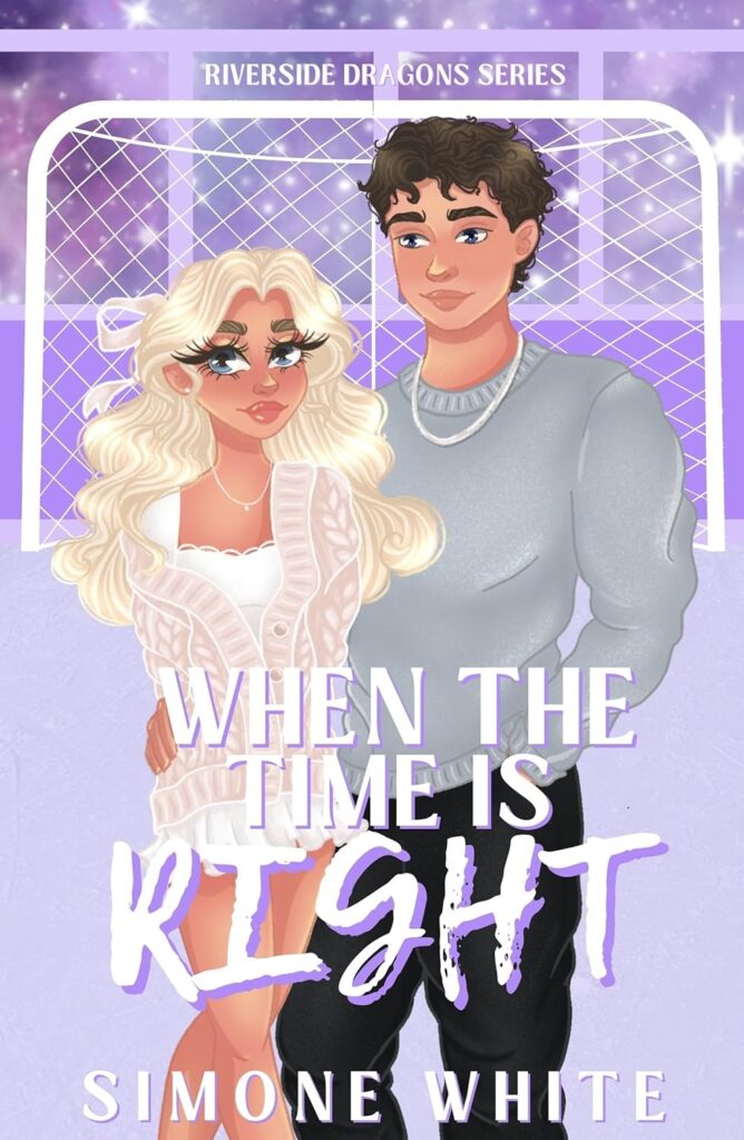 “When The Time Is Right” is a college hockey romance following Lilly and Greyson’s story. It’s the second book in the ‘Riverside Dragons’ series, and can be read as a complete standalone.